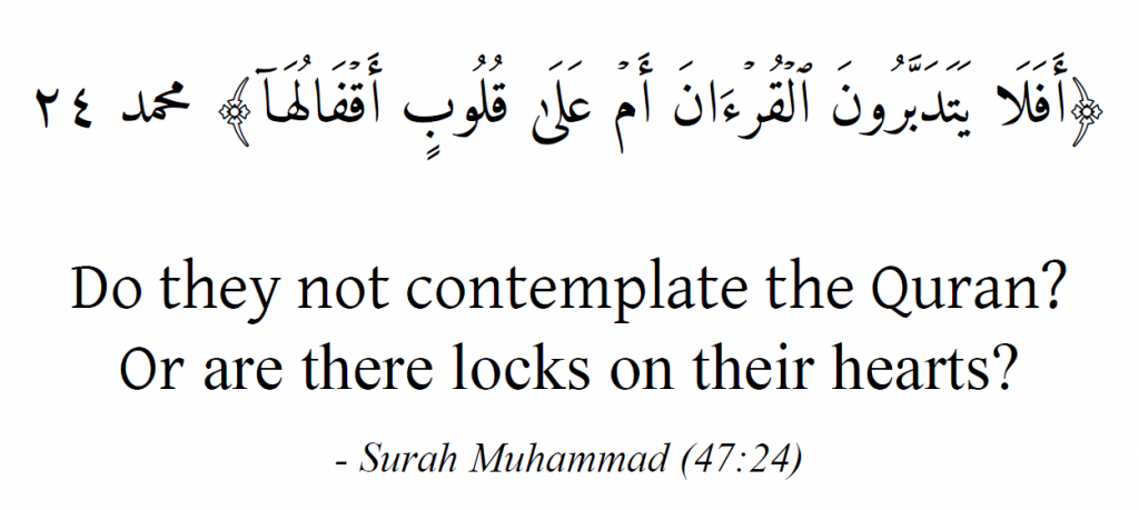 We hope, by attending with a present heart, an attentive ear, and an overall reflective state, that our hearts will be unlocked to the reality of Allah’s oneness through a deeper understanding of His words.